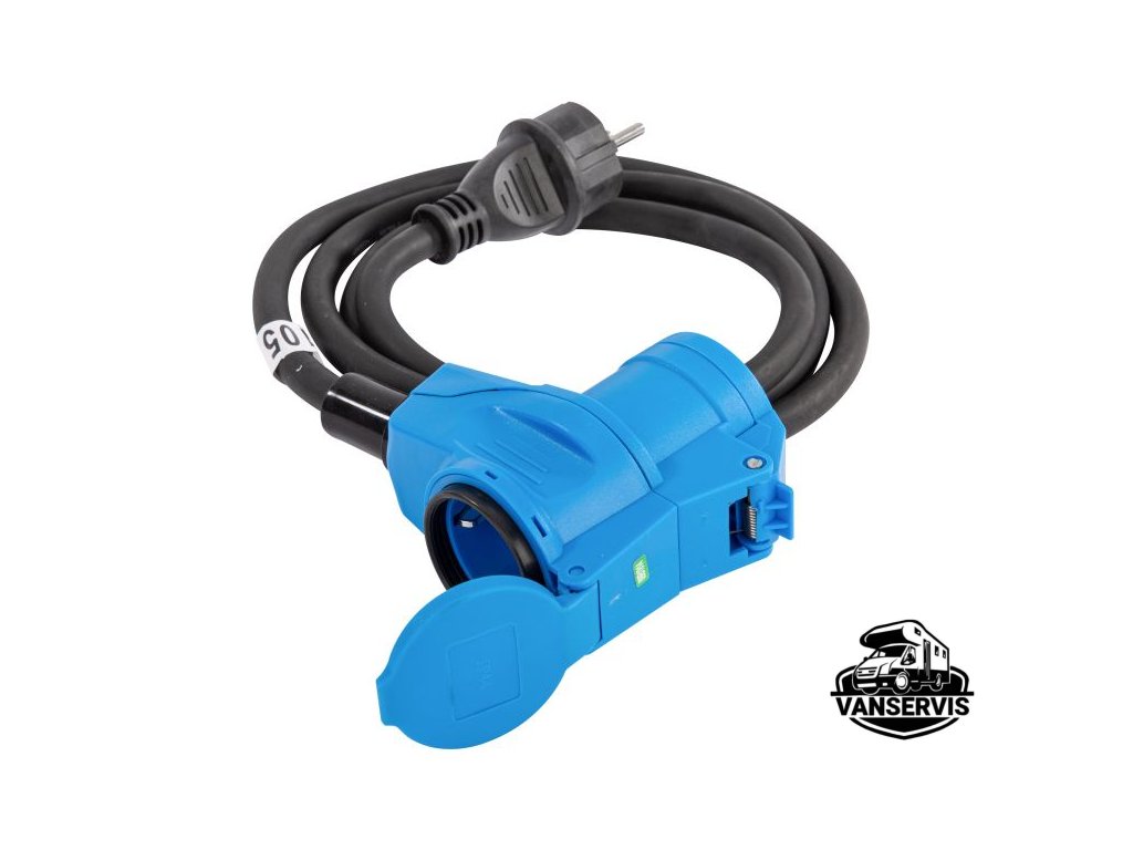 Tato redukce kombinuje CEE zásuvku (modrou, 3pólovou, 16A, 230V) s úhlovou klasickou zástrčkou Schuko (nebo českou 230V zástrčkou), což umožňuje připojení běžných spotřebičů k karavanovým, kempingovým nebo průmyslovým CEE zásuvkám. Úhlový design zástrčky zajišťuje lepší manipulaci a šetří místo při zapojení. Redukce je robustní, odolná proti povětrnostním vlivům a ideální pro venkovní použití, například v kempech, na lodích nebo na stavbách.