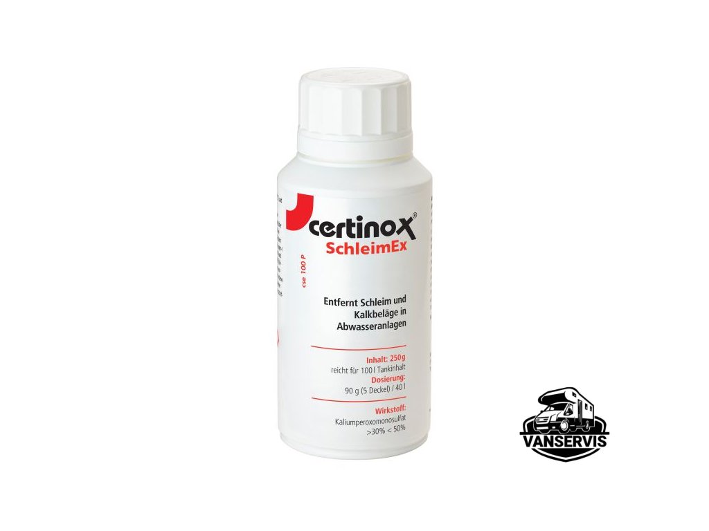 Certinox SchleimEx je čistič určený pro odpadní nádrže v karavanech, obytných vozech a lodích. Efektivně odstraňuje usazeniny, zápachy a mikroorganismy, čímž zajišťuje hygienu a správnou funkci odpadních systémů.