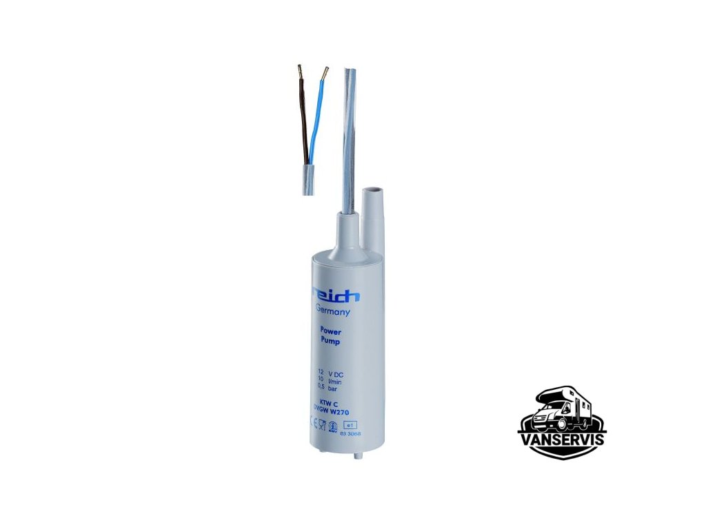Ponorné čerpadlo Reich je spolehlivé a výkonné čerpadlo určené pro čerpání vody v karavanech, obytných vozech a lodích. Nabízí dvě varianty s různým průtokem a tlakem – 10 l/min (0,5 bar), 12 l/min (0,6 bar). Díky kompaktnímu designu a nízké spotřebě energie je ideální pro mobilní vodní systémy.