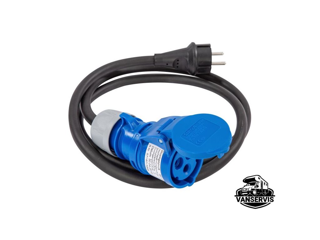 Redukce CEE na klasickou zástrčku umožňuje připojení zařízení s běžnou 230V Schuko (nebo českou) zástrčkou do evropské CEE modré zásuvky (16A, 3pól).