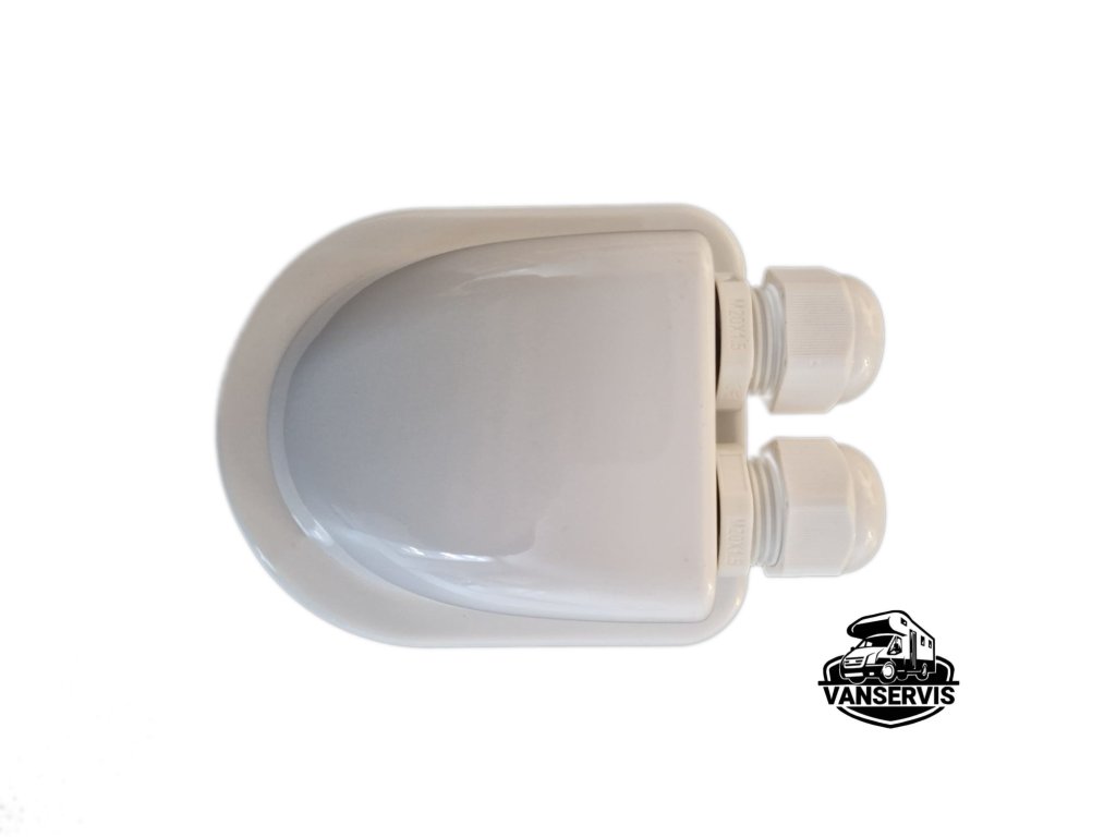 Střešní průchodka je dvojitá vodotěsná průchodka určená pro bezpečné vedení kabelů přes střechu karavanů, obytných vozů, lodí či budov. Vyrobena z odolného UV stabilizovaného plastu, zajišťuje dlouhou životnost a spolehlivou ochranu proti vodě a prachu.